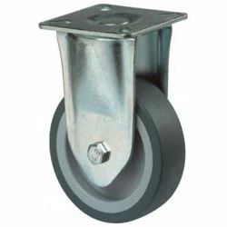 - Der gleitgelagerte Radkörper besteht aus Kunststoff, die Lauffläche aus blau-grauem Gummi.