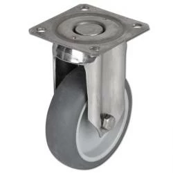 - Der gleitgelagerte Radkörper besteht aus Polypropylen, die Lauffläche aus blau-grauem, nicht kreidendem, thermoplastischem Gummi mit ca. 85° Shore A.