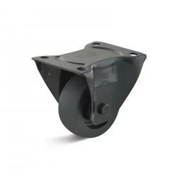 - Der kugelgelagerte Radkörper besteht aus Aluminium-Druckguss, die abriebfeste, ballige Lauffläche aus schwarzem Polyurethan mit ca. 92° Shore A.