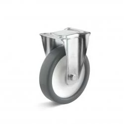 - Der zweifach kugelgelagerte Radkörper besteht aus Polypropylen, die Lauffläche aus grauem, thermoplastischem Gummi mit ca. 85° Shore A.