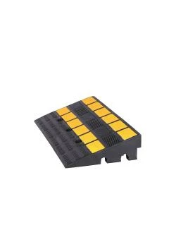 - Die Bordsteinrampe ist aus robustem Hartgummi gefertigt und für optimale Sichtbarkeit mit einer gelben, reflektierenden Folie versehen.