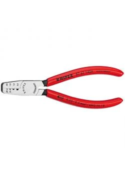 - Zum Verpressen von Aderendhülsen DIN 46228 Teil 1 + 4 im Bereich von 0,25 bis 2,5 mm².
