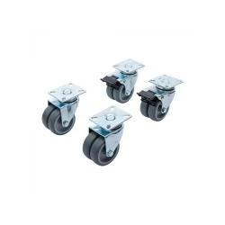 - Der Doppel-Lenkrollen-Satz besteht aus 4 Lenkrollen: 2x Lenkrolle mit Bremsen, 2x Lenkrolle ohne Bremse.