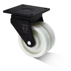 - Die Doppel-Schwerlast-Lenkrolle ist bestens für den Einsatz auf glattem Beton geeignet.