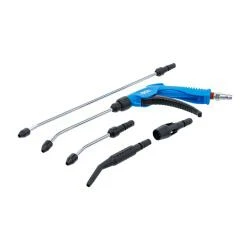 - Der Druckluft-Ausblaspistolensatz bietet mit 5 verschiedenen Düsenaufsätzen viele Anwendungsmöglichkeiten.