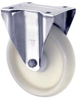 - Die Rolle weist eine hohe Beständigkeit gegen Chemikalien auf, alle Einbauteile sind rost- und säurebeständig. Dazu bietet die Rolle einen geringen Rollwiderstand und einen leichten Lauf auf glatten Böden.