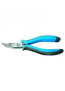 - die Elektronik-Flachrundzange mit Öffnungsfeder, hat extra lange, flach-runde Backen die 45° gewinkelt sind