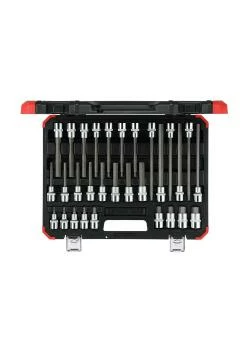 - Der Satz wird in einem Kunststoffkoffer im GEDORE red Design mit Metallscharnieren und Verschlüssen mit klemmgesicherten Werkzeugen geliefert.