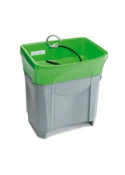 - Das Teilereinigungsgerät besteht aus hochwertigem-, kreislauffähigem LDPE-Kunststoff und verfügt über eine Heizung, die den VOC-freien Reiniger auf die werkseitig voreingestellte Temperatur von 41 °C erwärmt.