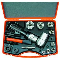 - Bestehend aus: 1 Aluminium Compact Combi Handhydraulikstanze, 8 Tristar Plus Stempel und Matrizen, 2 Hydraulik-Schrauben, 1 Vorbohrer, 1 Distanzbuchsensatz