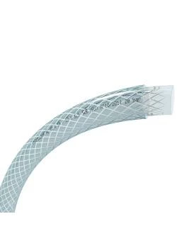 - Der dreischichtige transparente Schlauch besteht aus Weich-PVC der Klasse A, mit einem Gewebe aus Polyester von hoher Festigkeit.