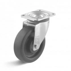 - Die Rolle weist eine hohe Beständigkeit gegen Chemikalien und Bruchsicherheit bei hoher Belastung auf. Darüber hinaus bietet die Rolle einen nur geringen Rollwiderstand und ist elektrisch leitfähig.
