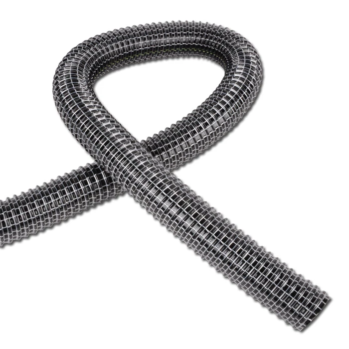 - Der Spiralschlauch ist aus zwei Lagen PVC mit eingelegter Federstahlspirale gefertigt und axial wie radial fadenverstärkt.