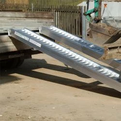- Verladeschienen speziell zum Verladen von schweren Baumaschinen mit Stahlketten, Stapler und Arbeitsbühnen