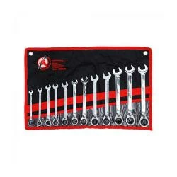 - Der Ratschenring-Maulschlüsselsatz wird in einer praktischen Rolltasche geliefert und besteht aus 22 Ratschenring-Maulschlüsseln.