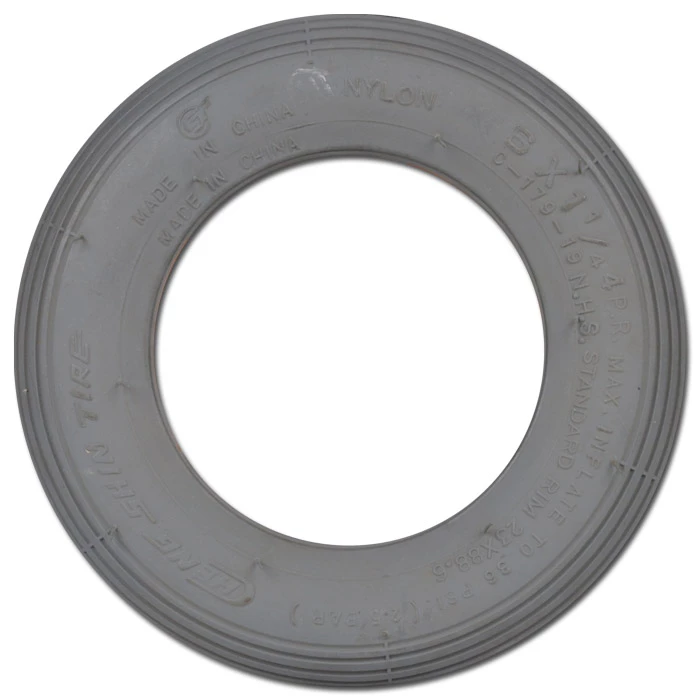 - Die Reifendecke mit Rillenprofil ist aus schwarzem oder grauem Gummi gefertigt.