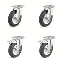 - Das Set besteht aus je zwei Lenkrollen und zwei Lenkrollen mit Doppelstopp.