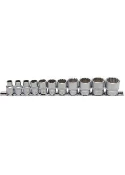 - die Steckschlüssel sind gerändelt für eine bessere Griffigkeit und auf einer Metallschiene zur besseren Lagerung