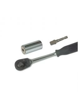 - Das Steckschlüsseleinsatz Set besteht aus einem Gripper, einer Ratsche 3/8 Zoll und einem Adapter für Akkuschrauber.