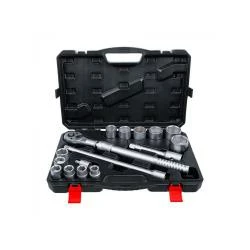 - Der Steckschlüsselsatz ermöglicht den kraftvollen Einsatz an Nutzfahrzeugen, Traktoren und Maschinen.