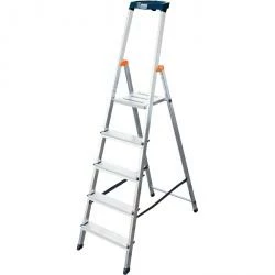 - Stufen-Stehleiter mit hohem Sicherheits-Bügel und großer, rutschsicherer Plattform