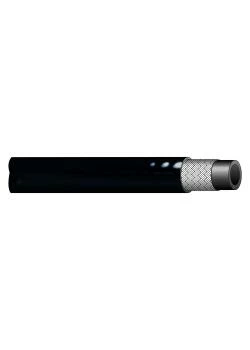 - Die geprickte Außendecke des Schlauchs ist aus schwarzem Polyurethan gefertigt, die Innenseele bildet ein nahtlos extrudiertes Polyesterrohr. Als Druckträger dienen Aramid- bzw. Kevlarfasern.